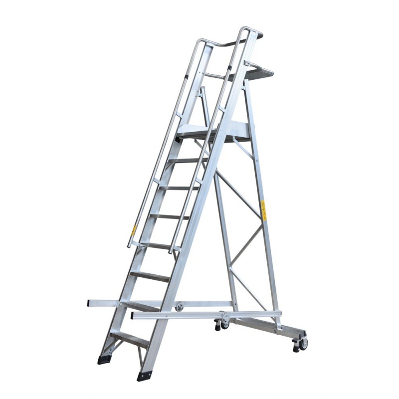 Le ruote garantiscono un agile movimento della scala, le barre di sollevamento sono richiudibili ed ha un sistema di chiusura rapido a pacchetto.