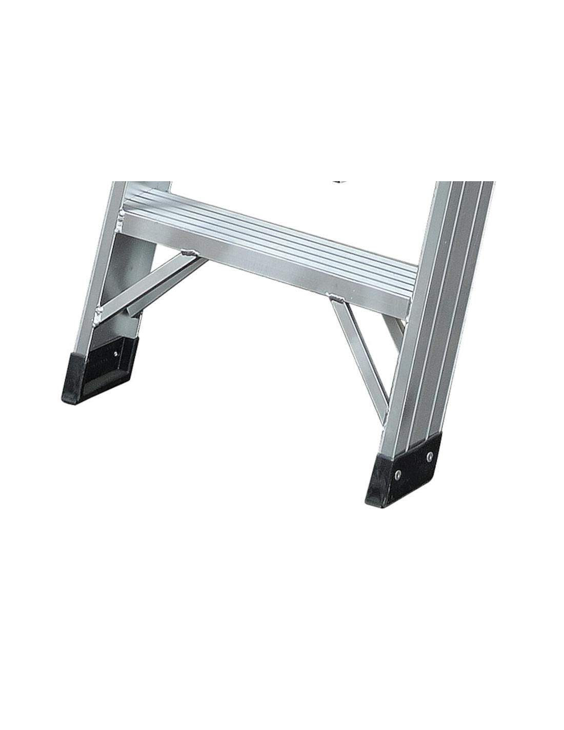 I gradini sono antiscivolo e larghi 10 cm, i montanti di salita anch'essi in alluminio misurano mm. 104x27.