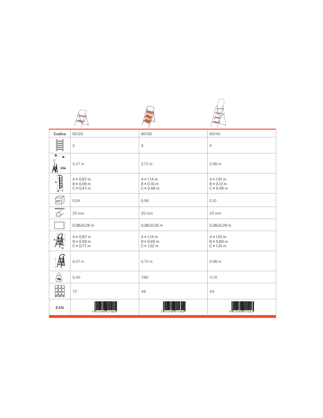 Piattina unica di collocamento tra i gradini ed un gancio di blocco, per un'apertura e una chiusura facile.