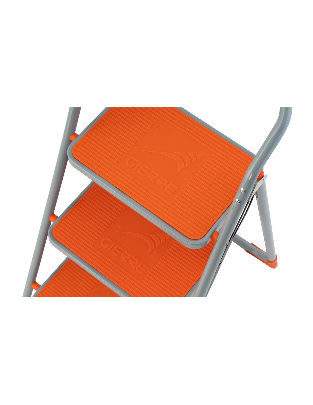 Gierre Sgabby è uno sgabello con gradino largo, struttura in acciaio, con base d'appoggio a terra a corpo unico per una maggiore stabilità e sicurezza.