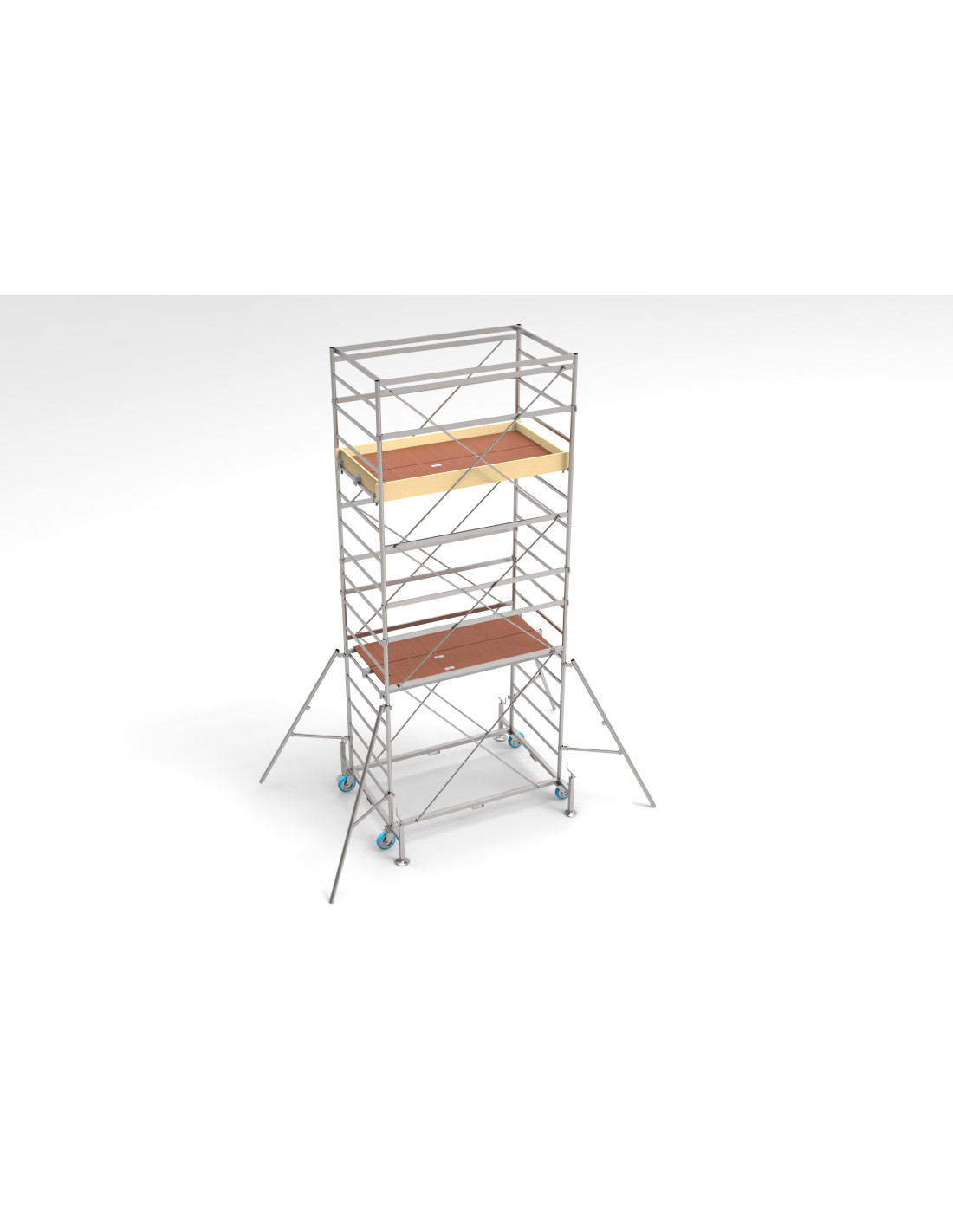 Una gamma a norma Europea di torri mobili in acciaio con un sistema di chiusura dei tiranti con nottolino automatico per un lavoro veloce e facile.